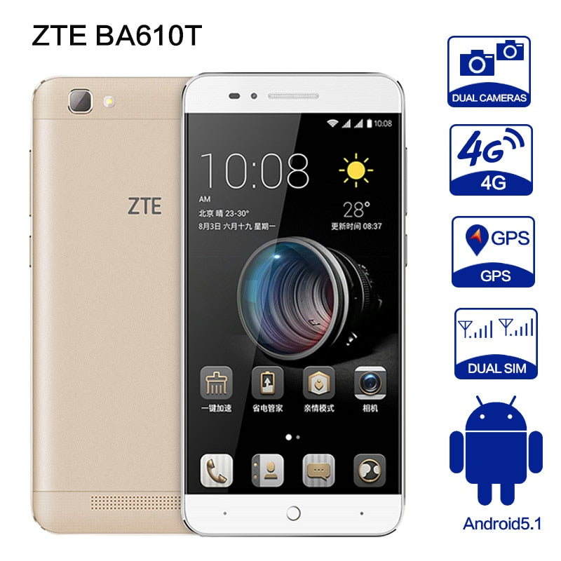 ZTE BA610T MTK6735P Quad Core Android 5.1 2GB RAM 8GB ROM 4000mAh Dual SIM 8MP Camera OTG Mobile Phone yuanhang 4 smartphone