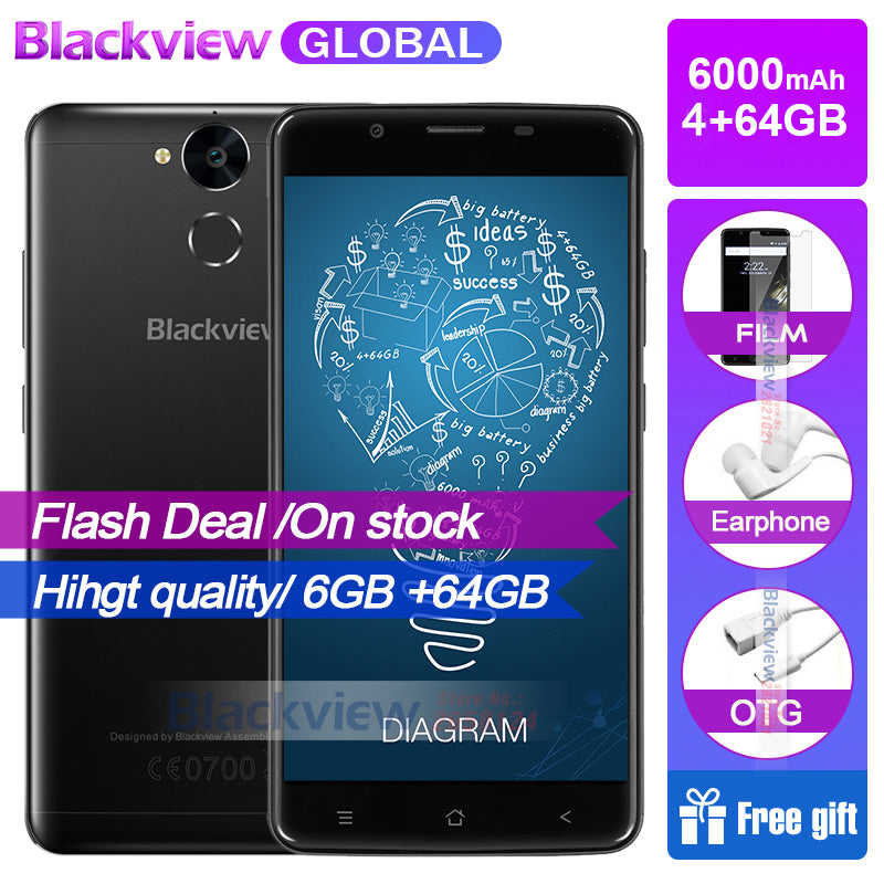 Blackview P2 Mobile Phone 6000mAh Fingerprint ID MTK6750T Octa Core 5.5" 1080P 13MP Camera Metal Body 9V2A Quick Charge