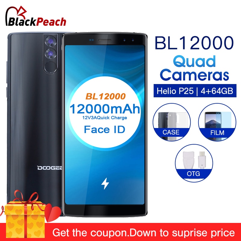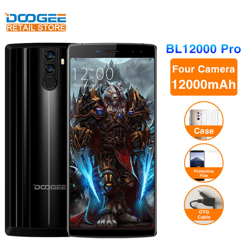 DOOGEE BL12000 Pro 6.0" 18:9 mobile phone Android 7.0 12000mAh MTK6763 Octa Core 6GB RAM 64GB ROM 16MP Quad Camera 4G Smartphone