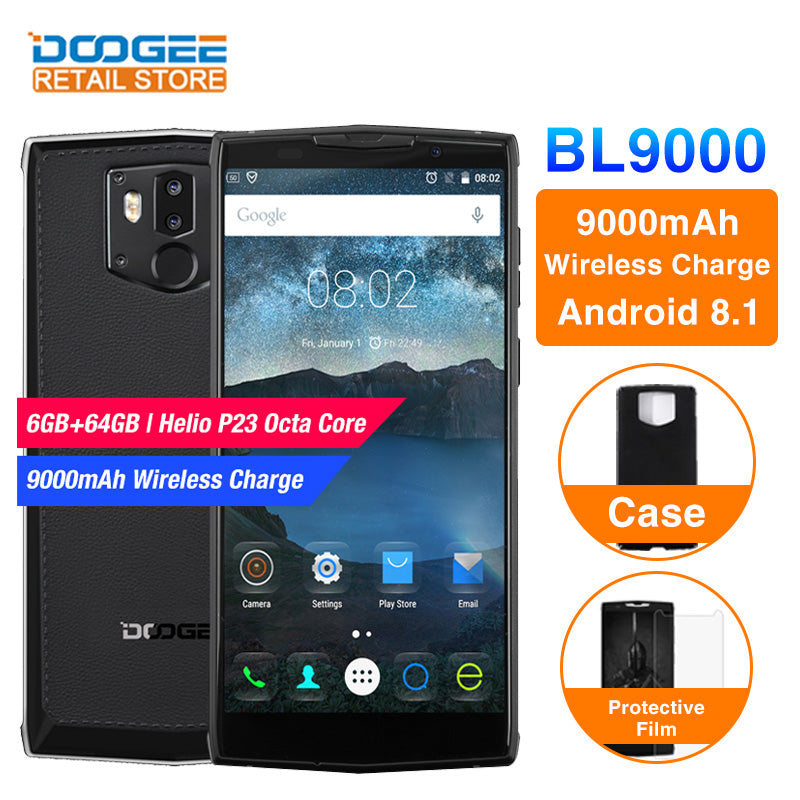 DOOGEE BL9000 5.99" Mobile phone Android 8.1 Helio P23 Octa Core 6GB 64GB 5V5A 9000mAh Wireless Charge NFC Dual Cam smartphone