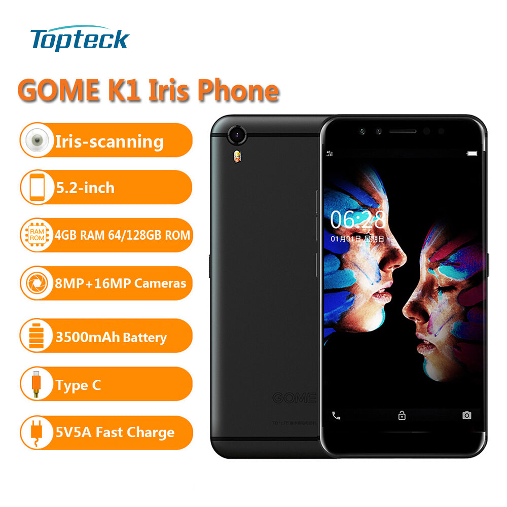 GOME K1 Iris 4G-LTE Mobile Phone 5.2''1080p MTK6757 8-core 4GB+128GB 8+16MP Camera Quick Charge Type C Fingerprint Smartphone