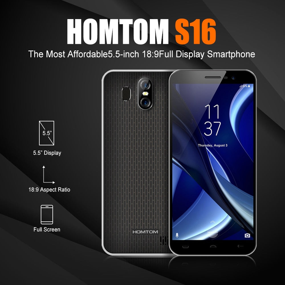 HOMTOM S16 3G Smartphone Android 7.0 MTK6580 Quad-core 1.3GHz 2GB RAM 16GB ROM 5.5 Inch Mobile Phone S16 Full Screen Dual Cams