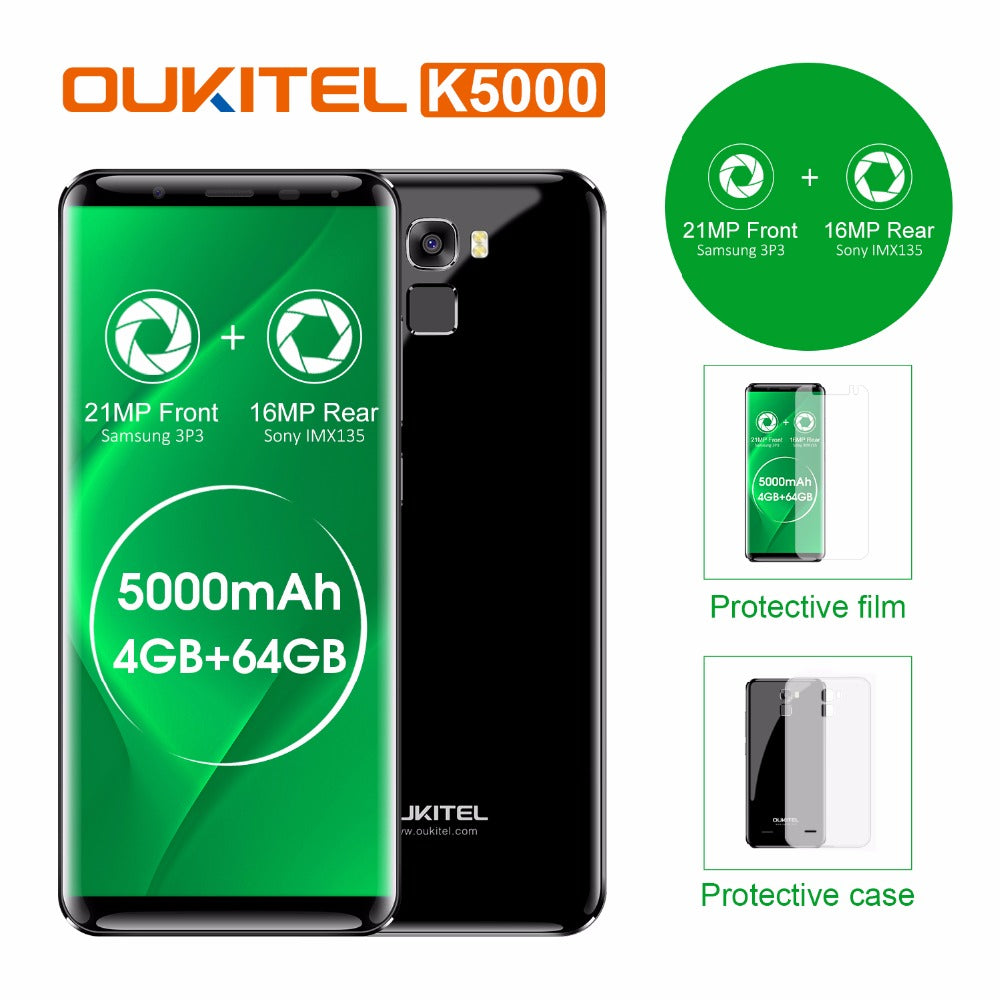 Original OUKITEL K5000 4G Mobile Phones Android 7.0 4GB+64GB Octa Core Smartphone 5.7 inch HD Display 21.0MP 5000mAh Cell Phone