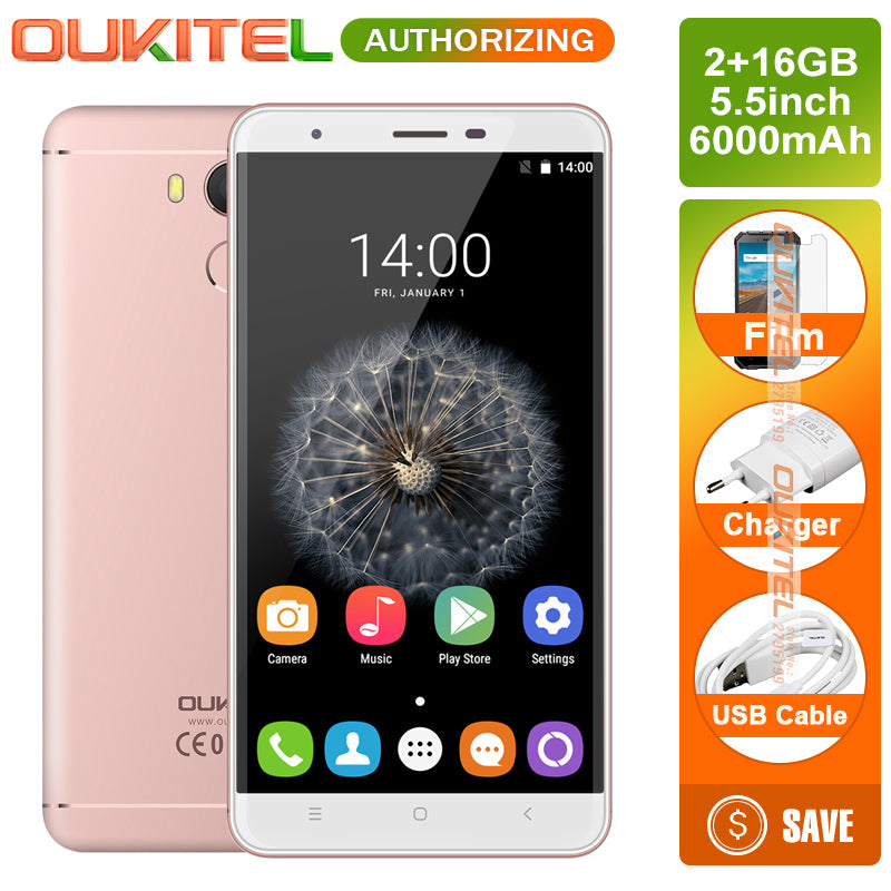 Original Oukitel K6000 Mobile Phone 6000mAh 5.5''HD Android 5.1 4G Smartphone MTK6735 Quad Core 2GB RAM 16GB ROM 8.0MP Cellphone