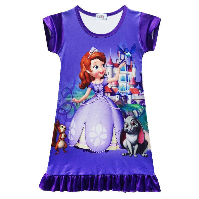 Pink pig Moana Trolls Cartoon Short Sleeve Girl Dress Miraculous Ladybug Dresses for silk Princess Sophia sleepwear kids clothes